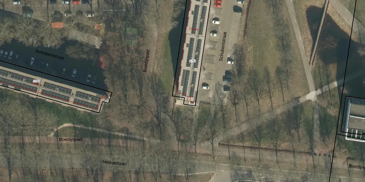Het perceel waarop Schubertstraat 320 staat heeft een oppervlakte van 1069 m². Dit is een zeer groot perceel. De perceeloppervlakte wordt geregistreerd door het Kadaster. Gedetailleerde informatie over de maten van dit perceel kunt u vinden in het rapport Kadastrale kaart met maatvoering van Schubertstraat 320.