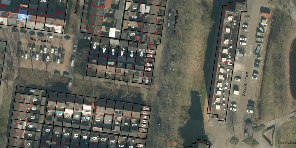 Gebruik de zoekbalk of klik op een perceel voor informatie over de adressen binnen dit perceel.