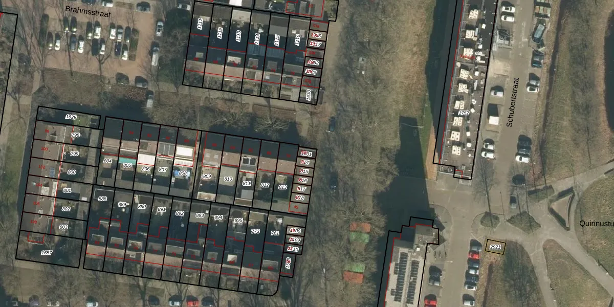 Het perceel waarop Schubertstraat 33-h staat heeft een oppervlakte van 20 m². Dit is een klein perceel. De perceeloppervlakte wordt geregistreerd door het Kadaster. Gedetailleerde informatie over de maten van dit perceel kunt u vinden in het rapport Kadastrale kaart met maatvoering van Schubertstraat 33-h.