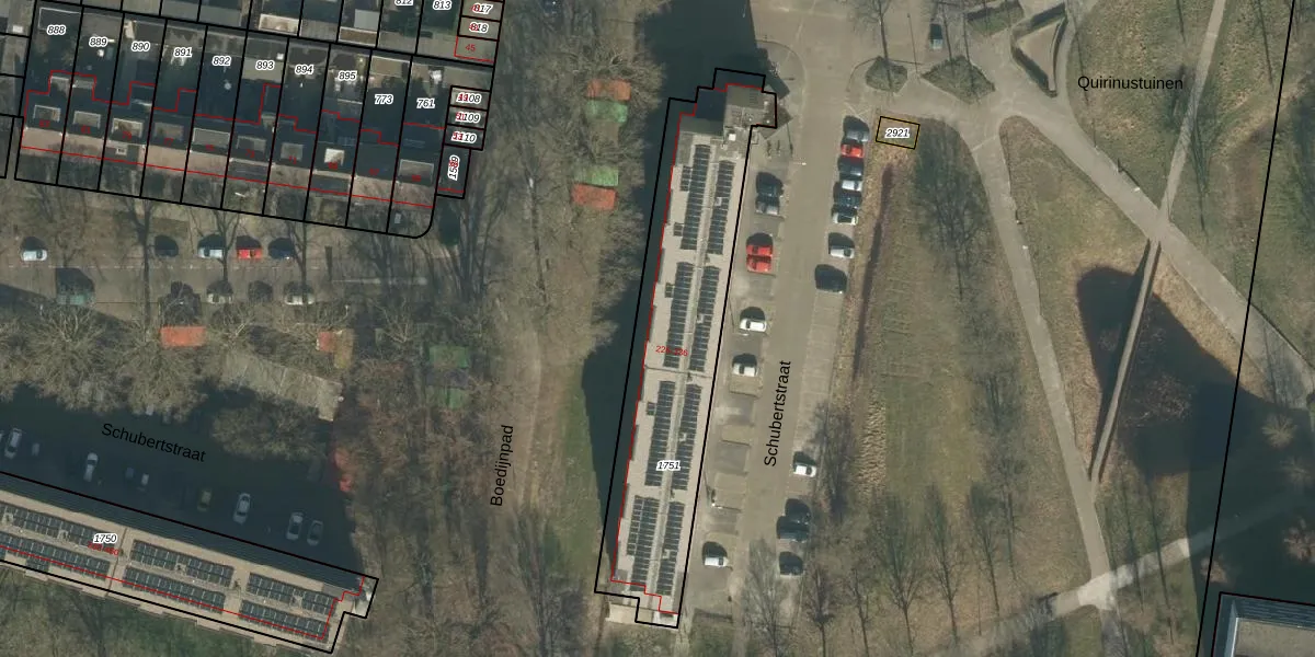 Het perceel waarop Schubertstraat 330 staat heeft een oppervlakte van 1069 m². Dit is een zeer groot perceel. De perceeloppervlakte wordt geregistreerd door het Kadaster. Gedetailleerde informatie over de maten van dit perceel kunt u vinden in het rapport Kadastrale kaart met maatvoering van Schubertstraat 330.