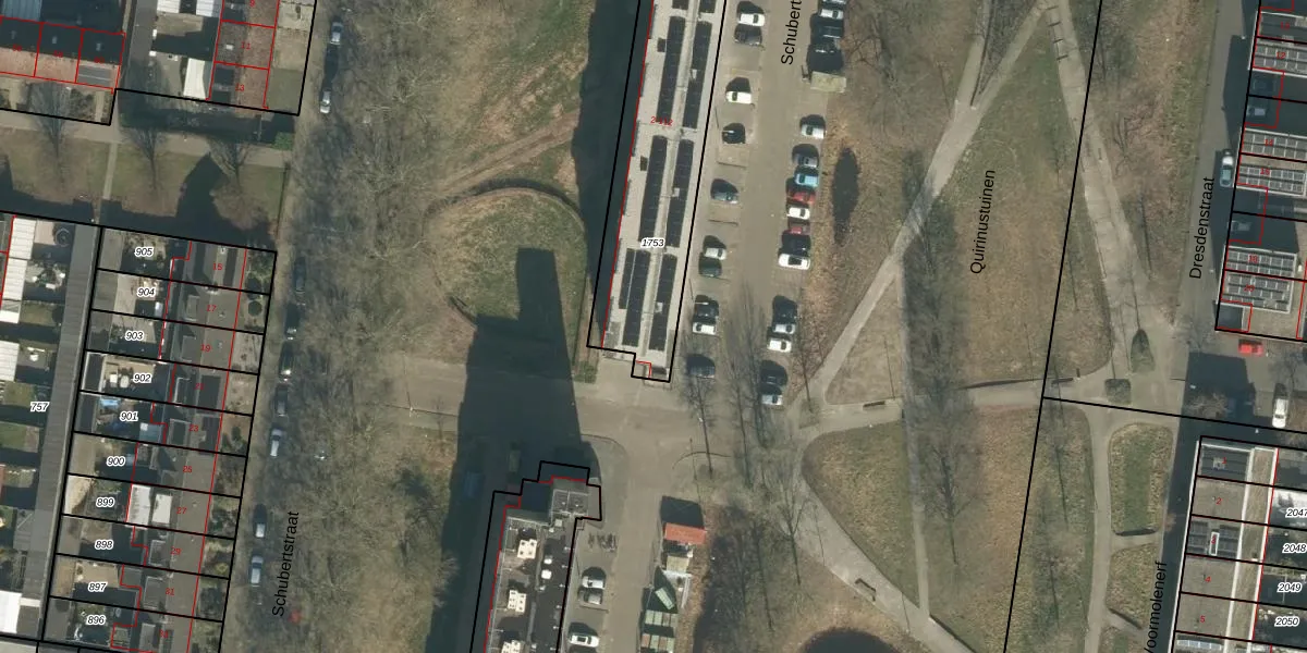 Het perceel waarop Schubertstraat 34 staat heeft een oppervlakte van 1041 m². Dit is een zeer groot perceel. De perceeloppervlakte wordt geregistreerd door het Kadaster. Gedetailleerde informatie over de maten van dit perceel kunt u vinden in het rapport Kadastrale kaart met maatvoering van Schubertstraat 34.