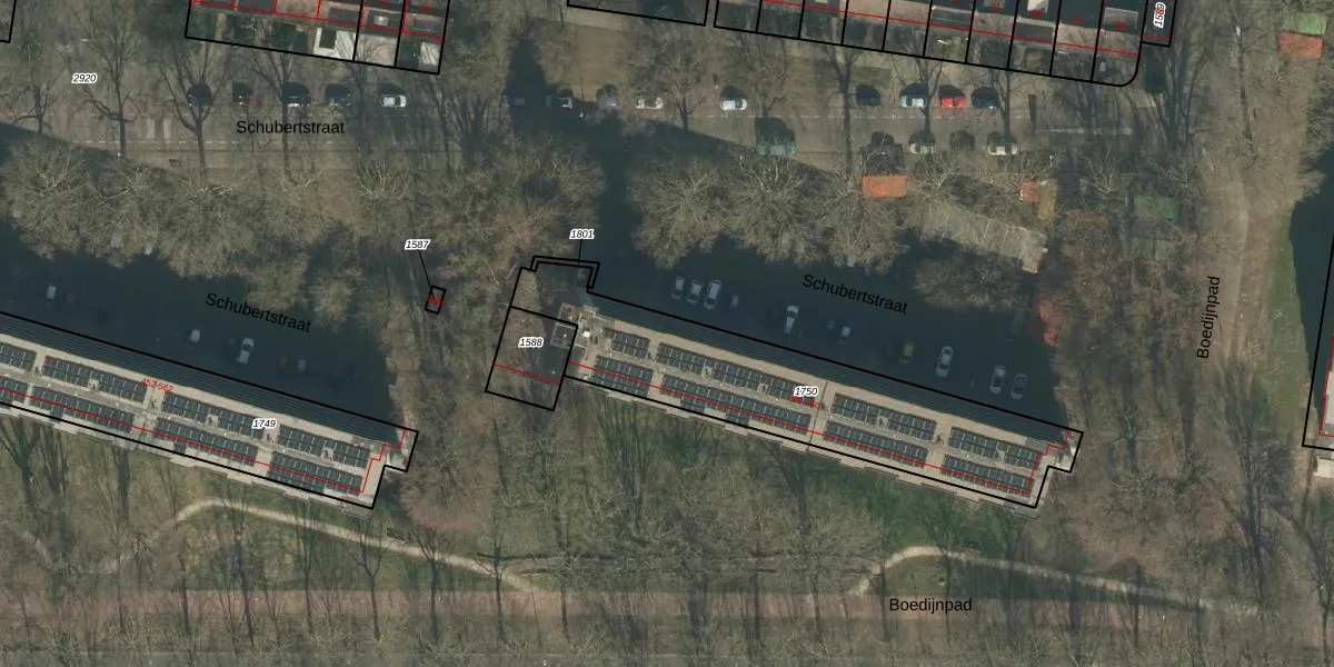 Het perceel waarop Schubertstraat 358 staat heeft een oppervlakte van 1058 m². Dit is een zeer groot perceel. De perceeloppervlakte wordt geregistreerd door het Kadaster. Gedetailleerde informatie over de maten van dit perceel kunt u vinden in het rapport Kadastrale kaart met maatvoering van Schubertstraat 358.