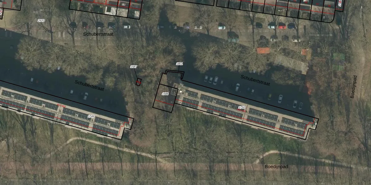 Het perceel waarop Schubertstraat 388 staat heeft een oppervlakte van 1058 m². Dit is een zeer groot perceel. De perceeloppervlakte wordt geregistreerd door het Kadaster. Gedetailleerde informatie over de maten van dit perceel kunt u vinden in het rapport Kadastrale kaart met maatvoering van Schubertstraat 388.