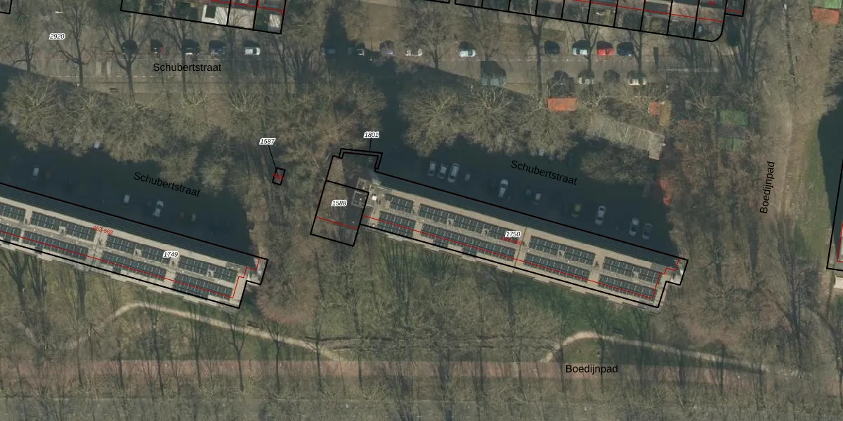 Het perceel waarop Schubertstraat 390 staat heeft een oppervlakte van 1058 m². Dit is een zeer groot perceel. De perceeloppervlakte wordt geregistreerd door het Kadaster. Gedetailleerde informatie over de maten van dit perceel kunt u vinden in het rapport Kadastrale kaart met maatvoering van Schubertstraat 390.
