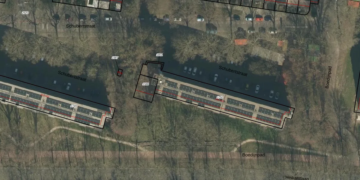 Het perceel waarop Schubertstraat 416 staat heeft een oppervlakte van 1058 m². Dit is een zeer groot perceel. De perceeloppervlakte wordt geregistreerd door het Kadaster. Gedetailleerde informatie over de maten van dit perceel kunt u vinden in het rapport Kadastrale kaart met maatvoering van Schubertstraat 416.