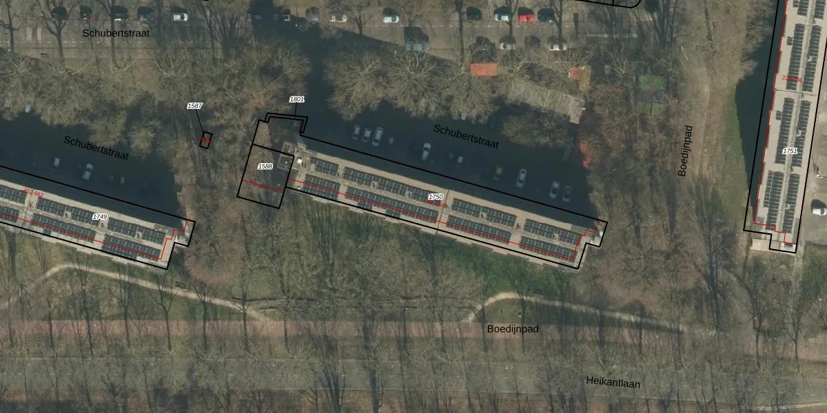 Het perceel waarop Schubertstraat 426 staat heeft een oppervlakte van 1058 m². Dit is een zeer groot perceel. De perceeloppervlakte wordt geregistreerd door het Kadaster. Gedetailleerde informatie over de maten van dit perceel kunt u vinden in het rapport Kadastrale kaart met maatvoering van Schubertstraat 426.