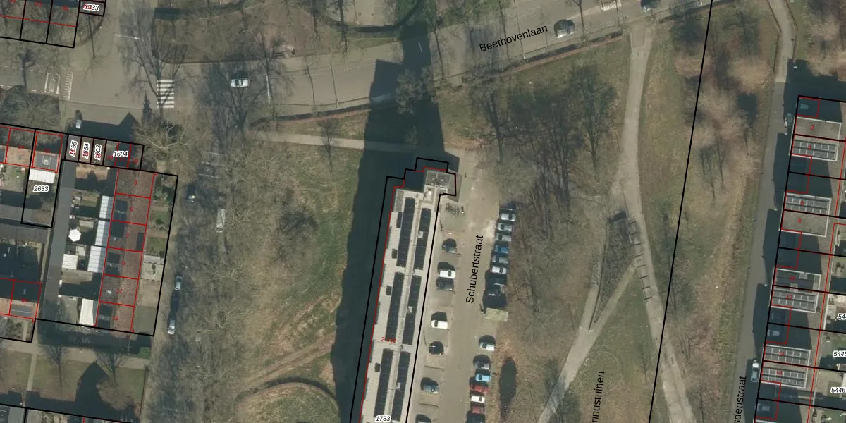 Het perceel waarop Schubertstraat 48 staat heeft een oppervlakte van 1041 m². Dit is een zeer groot perceel. De perceeloppervlakte wordt geregistreerd door het Kadaster. Gedetailleerde informatie over de maten van dit perceel kunt u vinden in het rapport Kadastrale kaart met maatvoering van Schubertstraat 48.