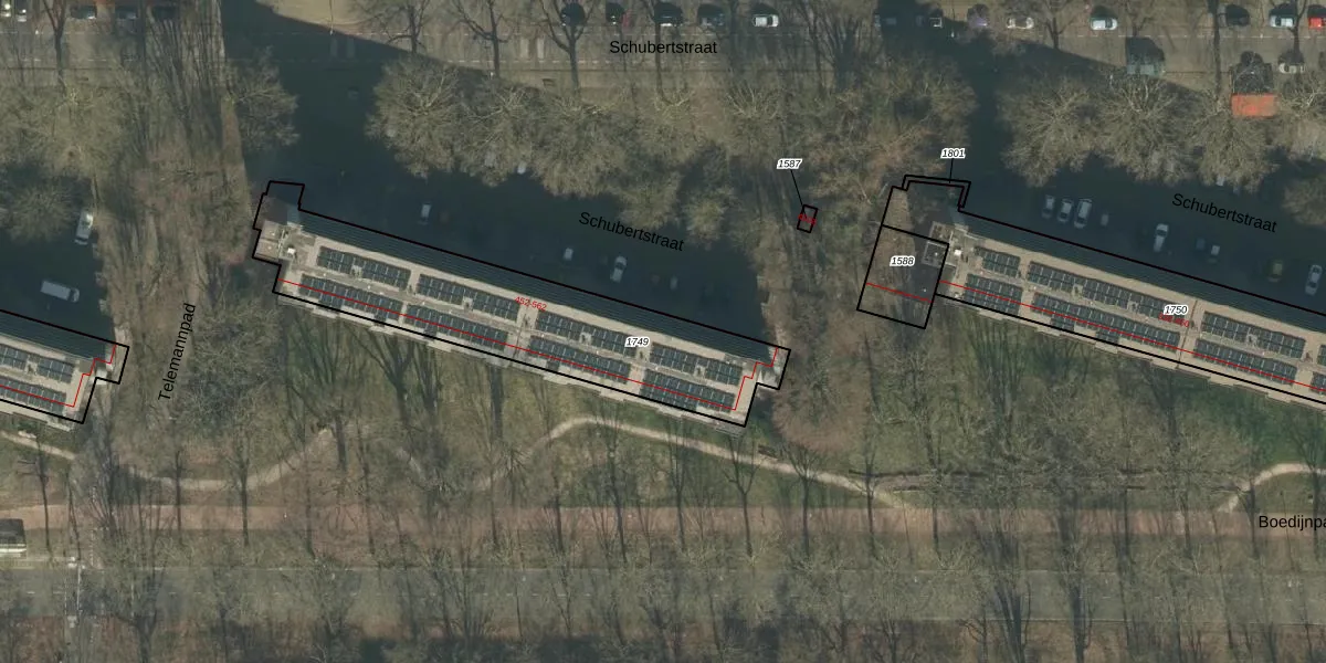 Het perceel waarop Schubertstraat 480 staat heeft een oppervlakte van 1040 m². Dit is een zeer groot perceel. De perceeloppervlakte wordt geregistreerd door het Kadaster. Gedetailleerde informatie over de maten van dit perceel kunt u vinden in het rapport Kadastrale kaart met maatvoering van Schubertstraat 480.