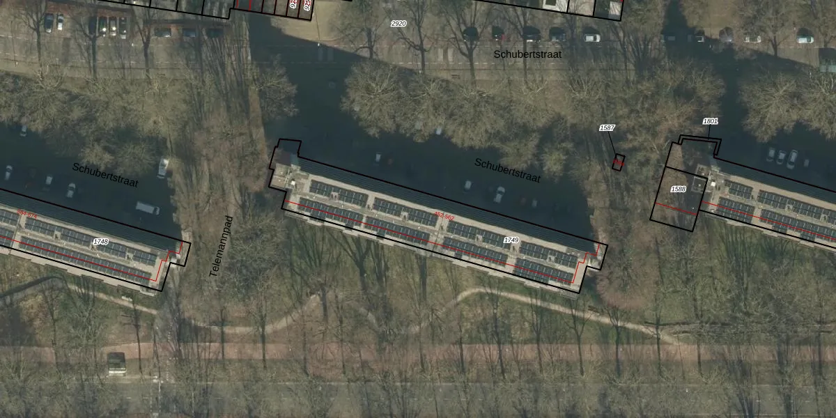 Het perceel waarop Schubertstraat 492 staat heeft een oppervlakte van 1040 m². Dit is een zeer groot perceel. De perceeloppervlakte wordt geregistreerd door het Kadaster. Gedetailleerde informatie over de maten van dit perceel kunt u vinden in het rapport Kadastrale kaart met maatvoering van Schubertstraat 492.