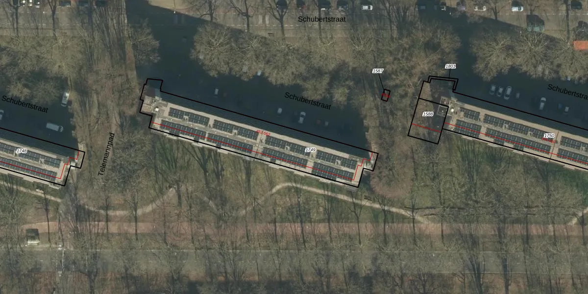 Het perceel waarop Schubertstraat 510 staat heeft een oppervlakte van 1040 m². Dit is een zeer groot perceel. De perceeloppervlakte wordt geregistreerd door het Kadaster. Gedetailleerde informatie over de maten van dit perceel kunt u vinden in het rapport Kadastrale kaart met maatvoering van Schubertstraat 510.
