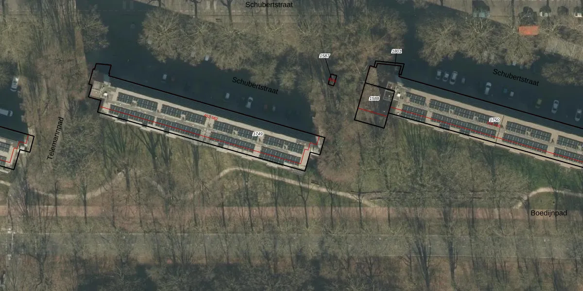 Het perceel waarop Schubertstraat 514 staat heeft een oppervlakte van 1040 m². Dit is een zeer groot perceel. De perceeloppervlakte wordt geregistreerd door het Kadaster. Gedetailleerde informatie over de maten van dit perceel kunt u vinden in het rapport Kadastrale kaart met maatvoering van Schubertstraat 514.