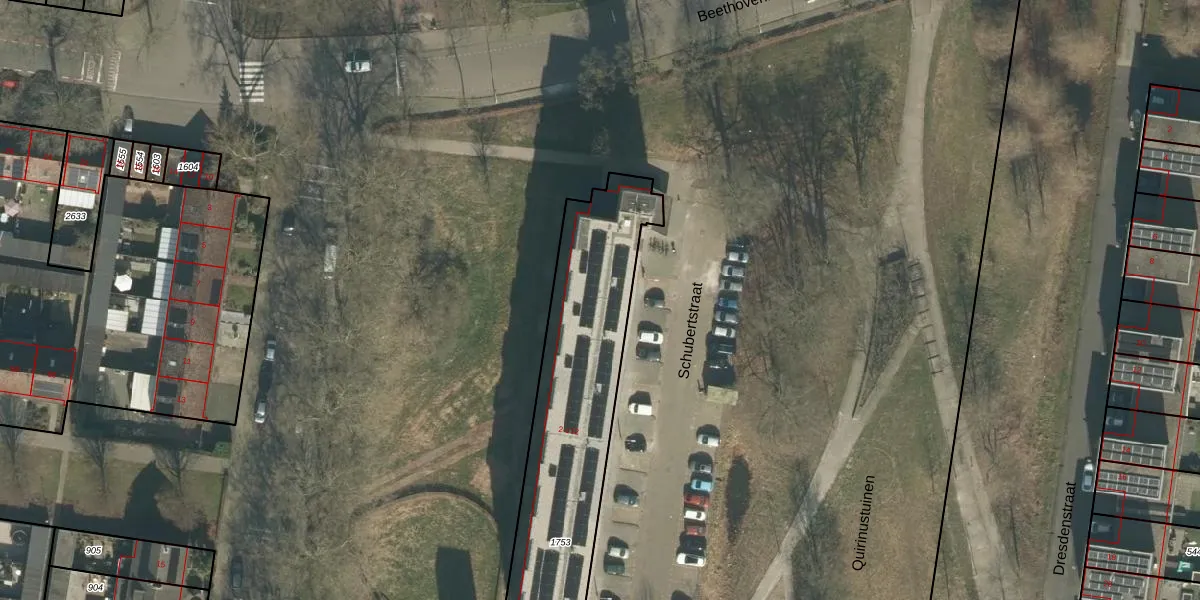 Het perceel waarop Schubertstraat 52 staat heeft een oppervlakte van 1041 m². Dit is een zeer groot perceel. De perceeloppervlakte wordt geregistreerd door het Kadaster. Gedetailleerde informatie over de maten van dit perceel kunt u vinden in het rapport Kadastrale kaart met maatvoering van Schubertstraat 52.