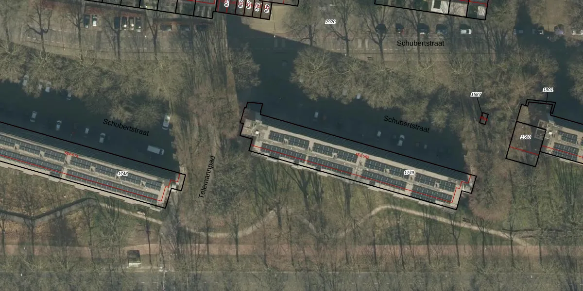 Het perceel waarop Schubertstraat 528 staat heeft een oppervlakte van 1040 m². Dit is een zeer groot perceel. De perceeloppervlakte wordt geregistreerd door het Kadaster. Gedetailleerde informatie over de maten van dit perceel kunt u vinden in het rapport Kadastrale kaart met maatvoering van Schubertstraat 528.