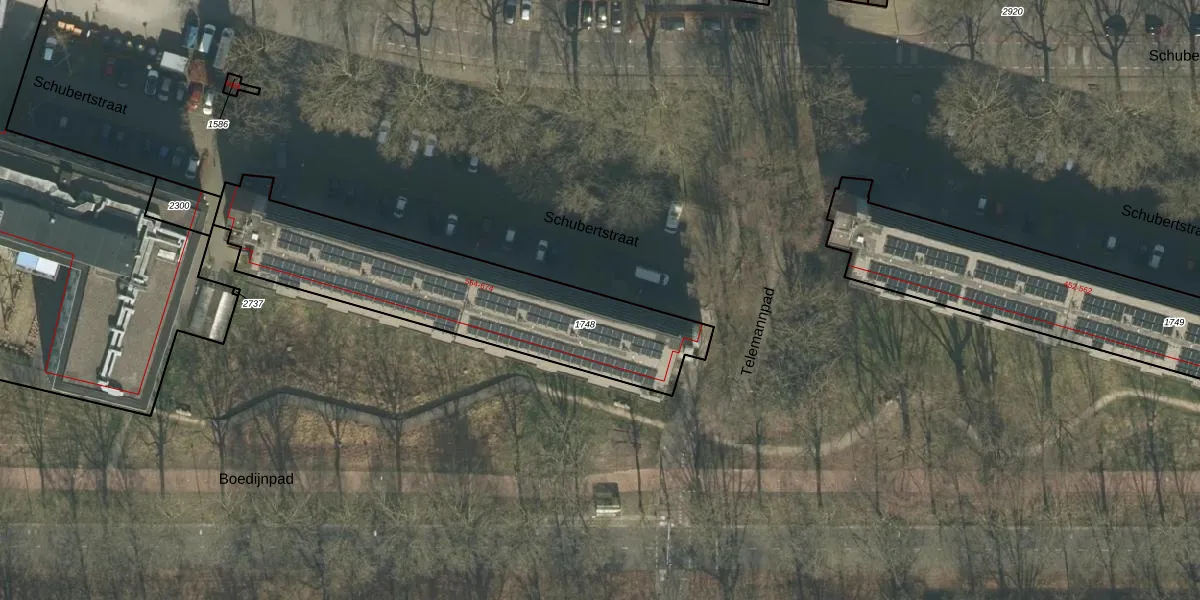Het perceel waarop Schubertstraat 566 staat heeft een oppervlakte van 1065 m². Dit is een zeer groot perceel. De perceeloppervlakte wordt geregistreerd door het Kadaster. Gedetailleerde informatie over de maten van dit perceel kunt u vinden in het rapport Kadastrale kaart met maatvoering van Schubertstraat 566.