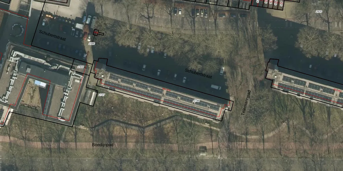 Het perceel waarop Schubertstraat 570 staat heeft een oppervlakte van 1065 m². Dit is een zeer groot perceel. De perceeloppervlakte wordt geregistreerd door het Kadaster. Gedetailleerde informatie over de maten van dit perceel kunt u vinden in het rapport Kadastrale kaart met maatvoering van Schubertstraat 570.