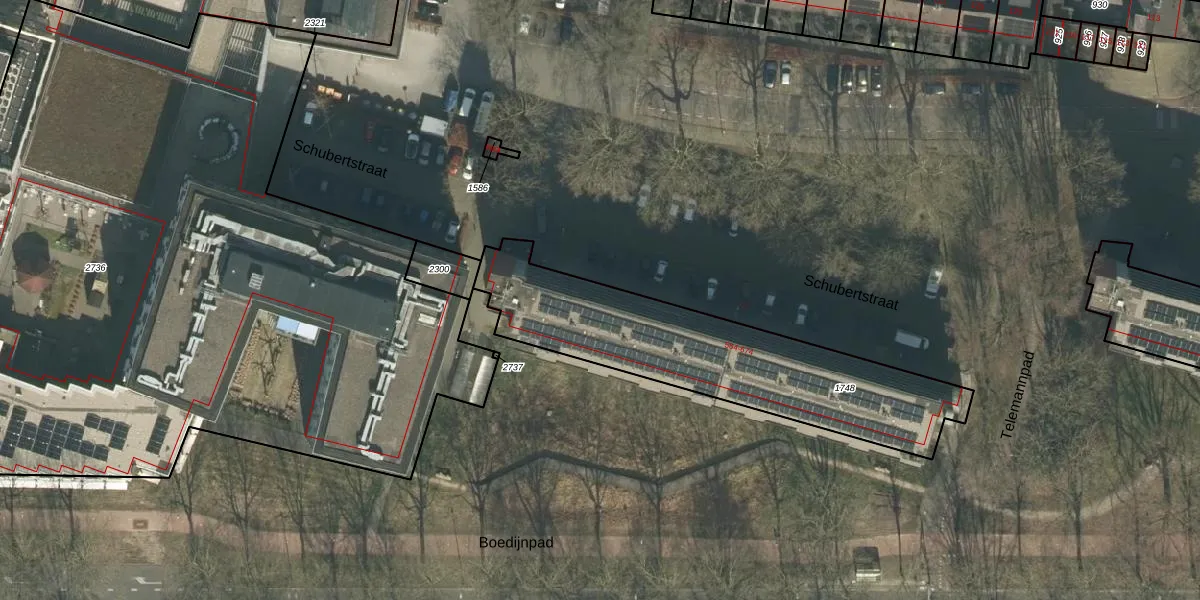 Het perceel waarop Schubertstraat 582 staat heeft een oppervlakte van 1065 m². Dit is een zeer groot perceel. De perceeloppervlakte wordt geregistreerd door het Kadaster. Gedetailleerde informatie over de maten van dit perceel kunt u vinden in het rapport Kadastrale kaart met maatvoering van Schubertstraat 582.