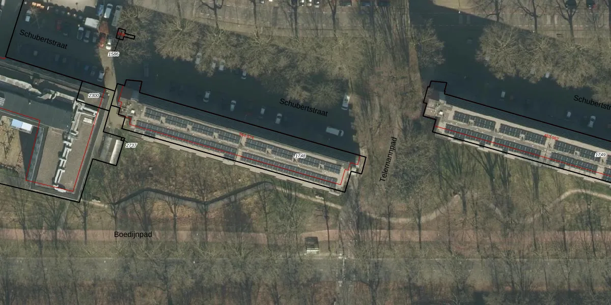 Het perceel waarop Schubertstraat 598 staat heeft een oppervlakte van 1065 m². Dit is een zeer groot perceel. De perceeloppervlakte wordt geregistreerd door het Kadaster. Gedetailleerde informatie over de maten van dit perceel kunt u vinden in het rapport Kadastrale kaart met maatvoering van Schubertstraat 598.