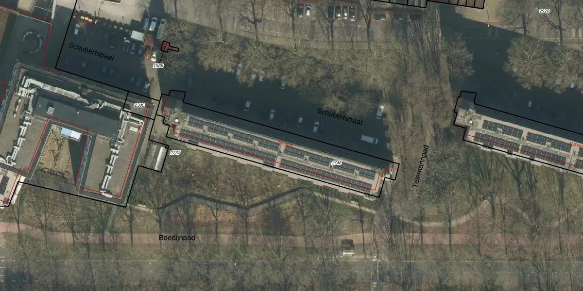Het perceel waarop Schubertstraat 602 staat heeft een oppervlakte van 1065 m². Dit is een zeer groot perceel. De perceeloppervlakte wordt geregistreerd door het Kadaster. Gedetailleerde informatie over de maten van dit perceel kunt u vinden in het rapport Kadastrale kaart met maatvoering van Schubertstraat 602.