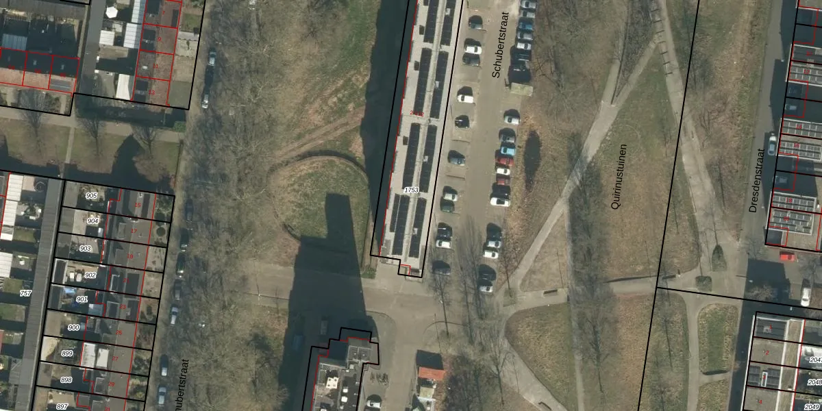 Het perceel waarop Schubertstraat 62 staat heeft een oppervlakte van 1041 m². Dit is een zeer groot perceel. De perceeloppervlakte wordt geregistreerd door het Kadaster. Gedetailleerde informatie over de maten van dit perceel kunt u vinden in het rapport Kadastrale kaart met maatvoering van Schubertstraat 62.