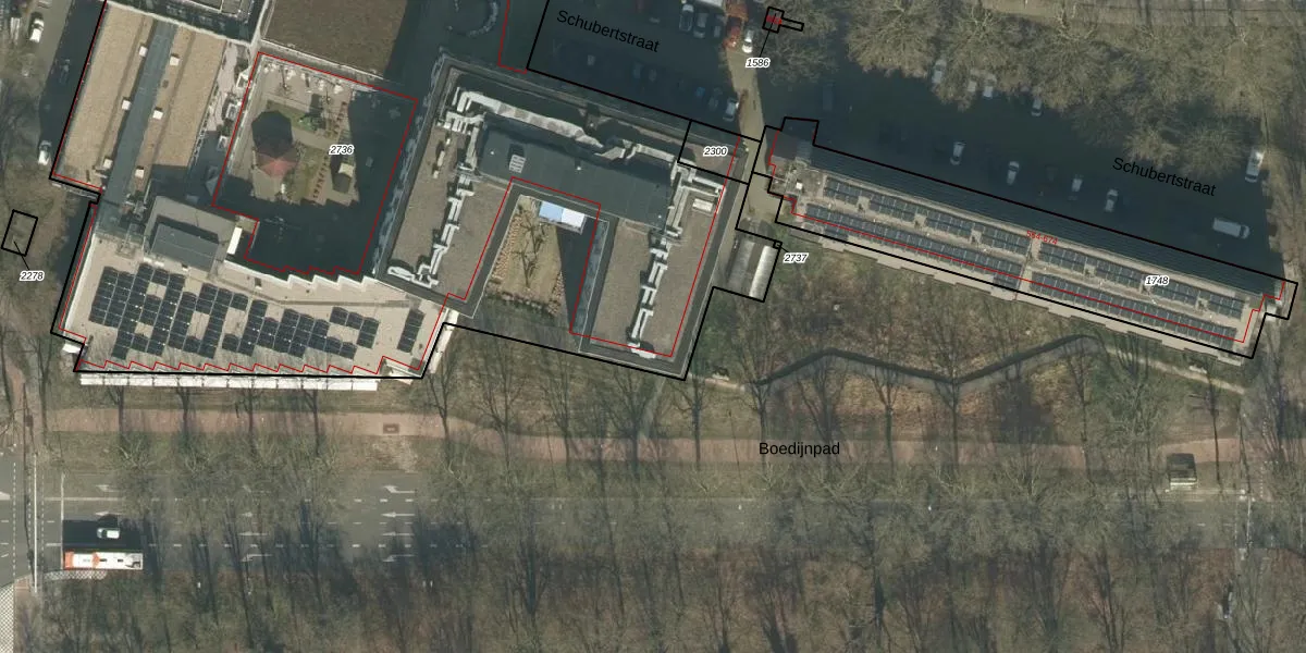 Het perceel waarop Schubertstraat 700-118 staat heeft een oppervlakte van 6095 m². Dit is een zeer groot perceel. De perceeloppervlakte wordt geregistreerd door het Kadaster. Gedetailleerde informatie over de maten van dit perceel kunt u vinden in het rapport Kadastrale kaart met maatvoering van Schubertstraat 700-118.