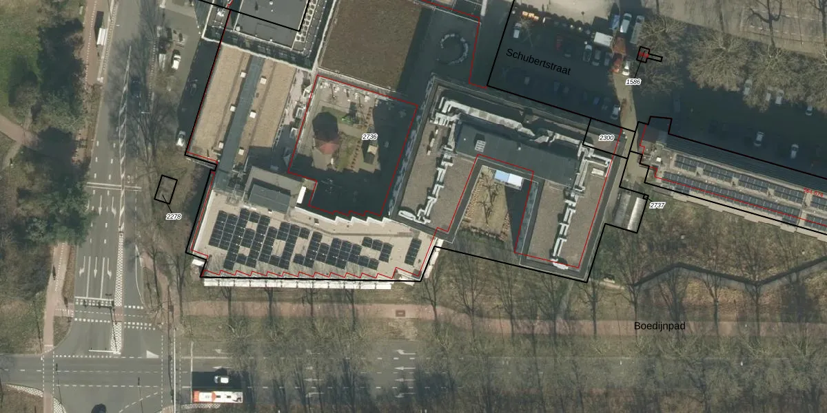 Het perceel waarop Schubertstraat 700-201 staat heeft een oppervlakte van 6095 m². Dit is een zeer groot perceel. De perceeloppervlakte wordt geregistreerd door het Kadaster. Gedetailleerde informatie over de maten van dit perceel kunt u vinden in het rapport Kadastrale kaart met maatvoering van Schubertstraat 700-201.