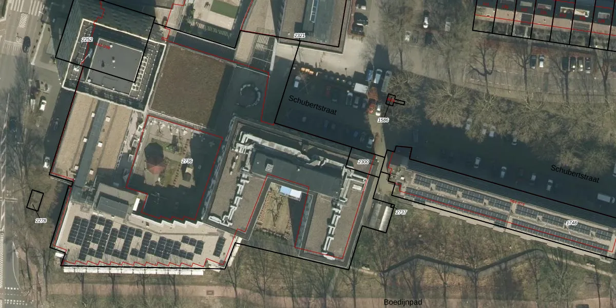 Het perceel waarop Schubertstraat 700-210 staat heeft een oppervlakte van 6095 m². Dit is een zeer groot perceel. De perceeloppervlakte wordt geregistreerd door het Kadaster. Gedetailleerde informatie over de maten van dit perceel kunt u vinden in het rapport Kadastrale kaart met maatvoering van Schubertstraat 700-210.