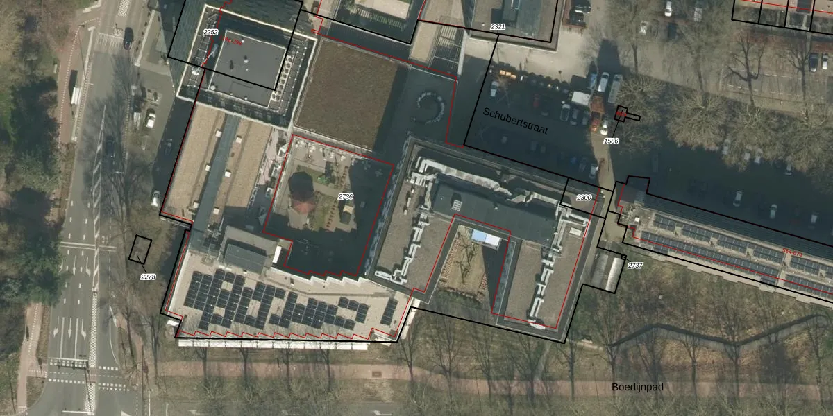 Het perceel waarop Schubertstraat 700-305 staat heeft een oppervlakte van 6095 m². Dit is een zeer groot perceel. De perceeloppervlakte wordt geregistreerd door het Kadaster. Gedetailleerde informatie over de maten van dit perceel kunt u vinden in het rapport Kadastrale kaart met maatvoering van Schubertstraat 700-305.