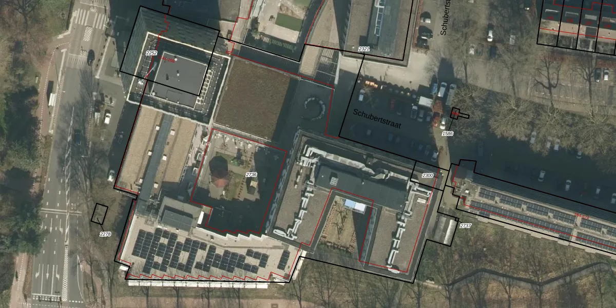 Het perceel waarop Schubertstraat 700-307 staat heeft een oppervlakte van 6095 m². Dit is een zeer groot perceel. De perceeloppervlakte wordt geregistreerd door het Kadaster. Gedetailleerde informatie over de maten van dit perceel kunt u vinden in het rapport Kadastrale kaart met maatvoering van Schubertstraat 700-307.