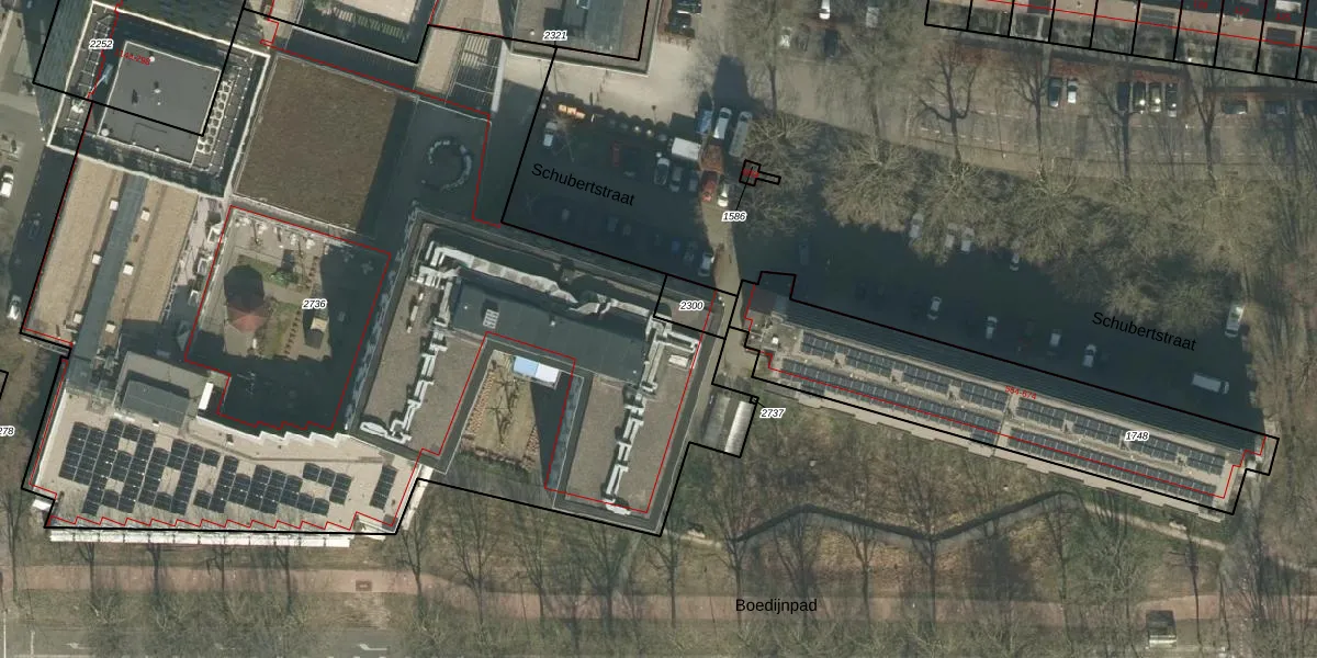 Het perceel waarop Schubertstraat 700-312 staat heeft een oppervlakte van 6095 m². Dit is een zeer groot perceel. De perceeloppervlakte wordt geregistreerd door het Kadaster. Gedetailleerde informatie over de maten van dit perceel kunt u vinden in het rapport Kadastrale kaart met maatvoering van Schubertstraat 700-312.