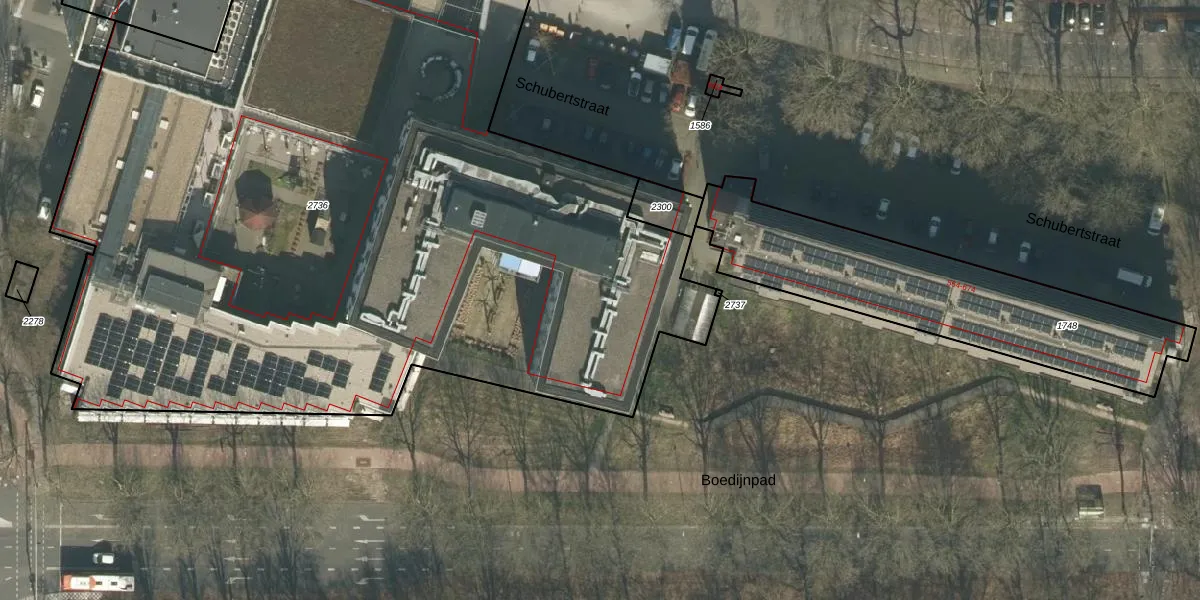 Het perceel waarop Schubertstraat 700-315 staat heeft een oppervlakte van 6095 m². Dit is een zeer groot perceel. De perceeloppervlakte wordt geregistreerd door het Kadaster. Gedetailleerde informatie over de maten van dit perceel kunt u vinden in het rapport Kadastrale kaart met maatvoering van Schubertstraat 700-315.
