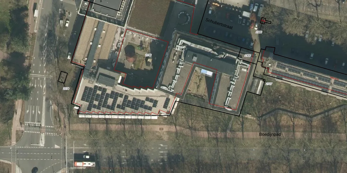 Het perceel waarop Schubertstraat 700-401 staat heeft een oppervlakte van 6095 m². Dit is een zeer groot perceel. De perceeloppervlakte wordt geregistreerd door het Kadaster. Gedetailleerde informatie over de maten van dit perceel kunt u vinden in het rapport Kadastrale kaart met maatvoering van Schubertstraat 700-401.