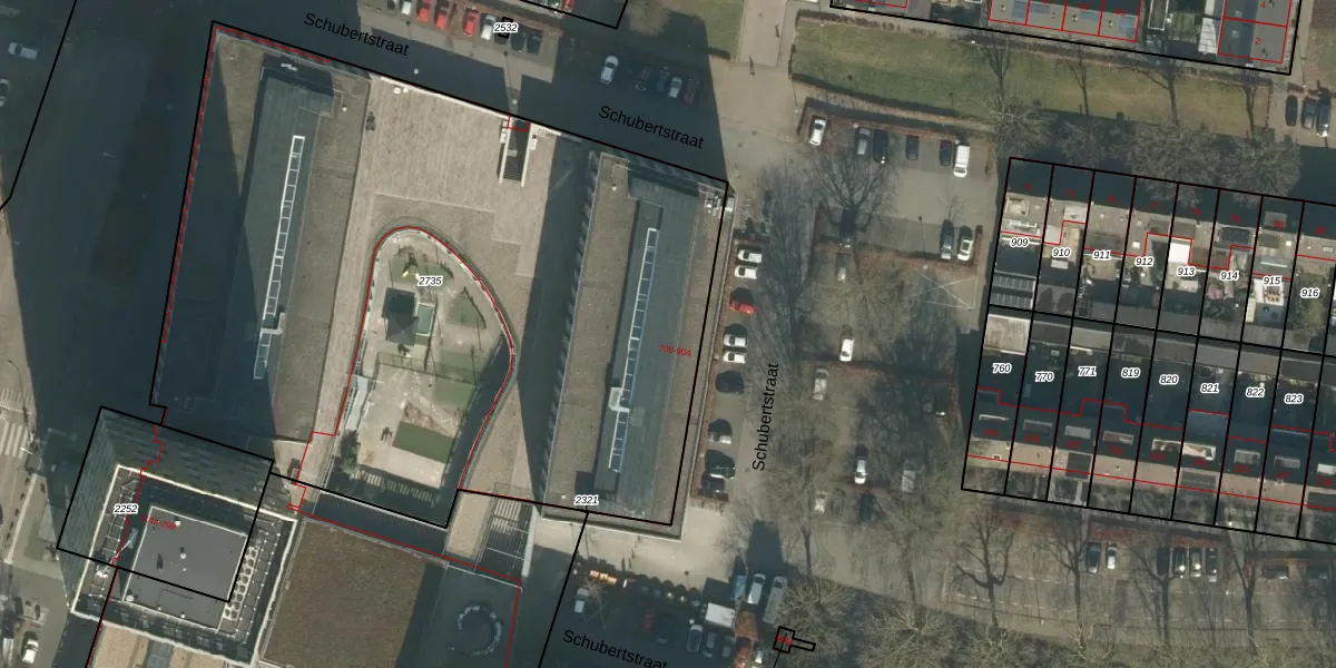Het perceel waarop Schubertstraat 712 staat heeft een oppervlakte van 4690 m². Dit is een zeer groot perceel. De perceeloppervlakte wordt geregistreerd door het Kadaster. Gedetailleerde informatie over de maten van dit perceel kunt u vinden in het rapport Kadastrale kaart met maatvoering van Schubertstraat 712.