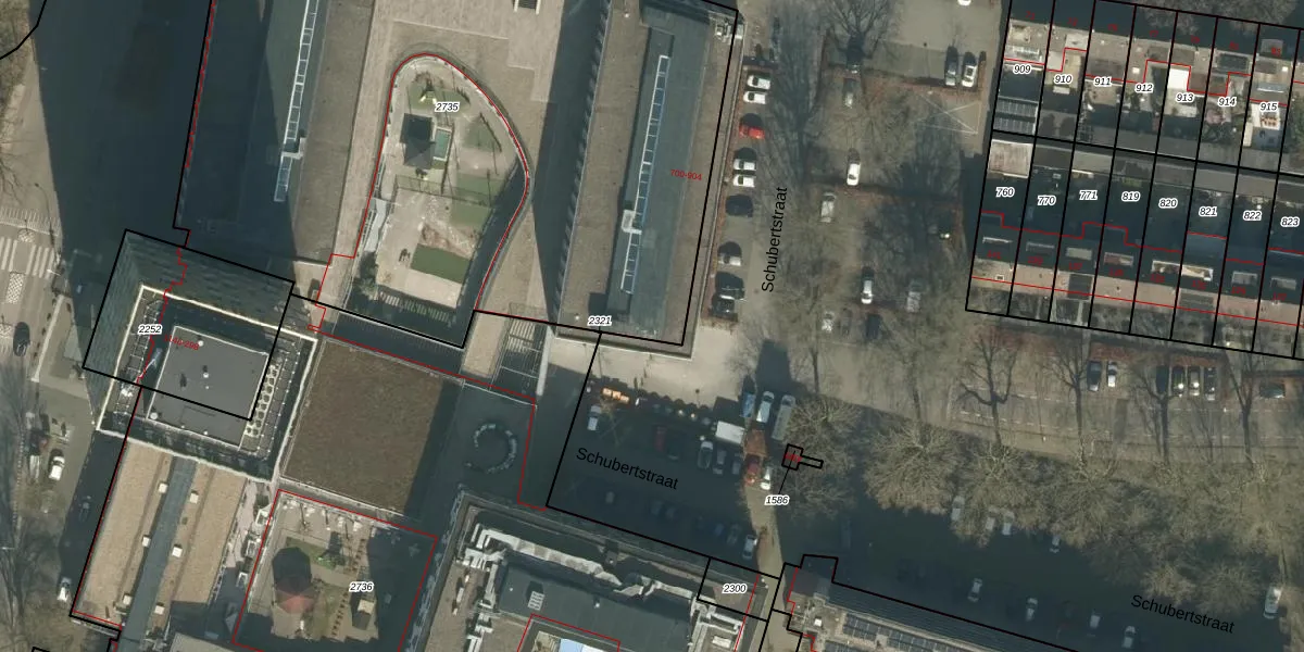 Het perceel waarop Schubertstraat 712-a staat heeft een oppervlakte van 4690 m². Dit is een zeer groot perceel. De perceeloppervlakte wordt geregistreerd door het Kadaster. Gedetailleerde informatie over de maten van dit perceel kunt u vinden in het rapport Kadastrale kaart met maatvoering van Schubertstraat 712-a.