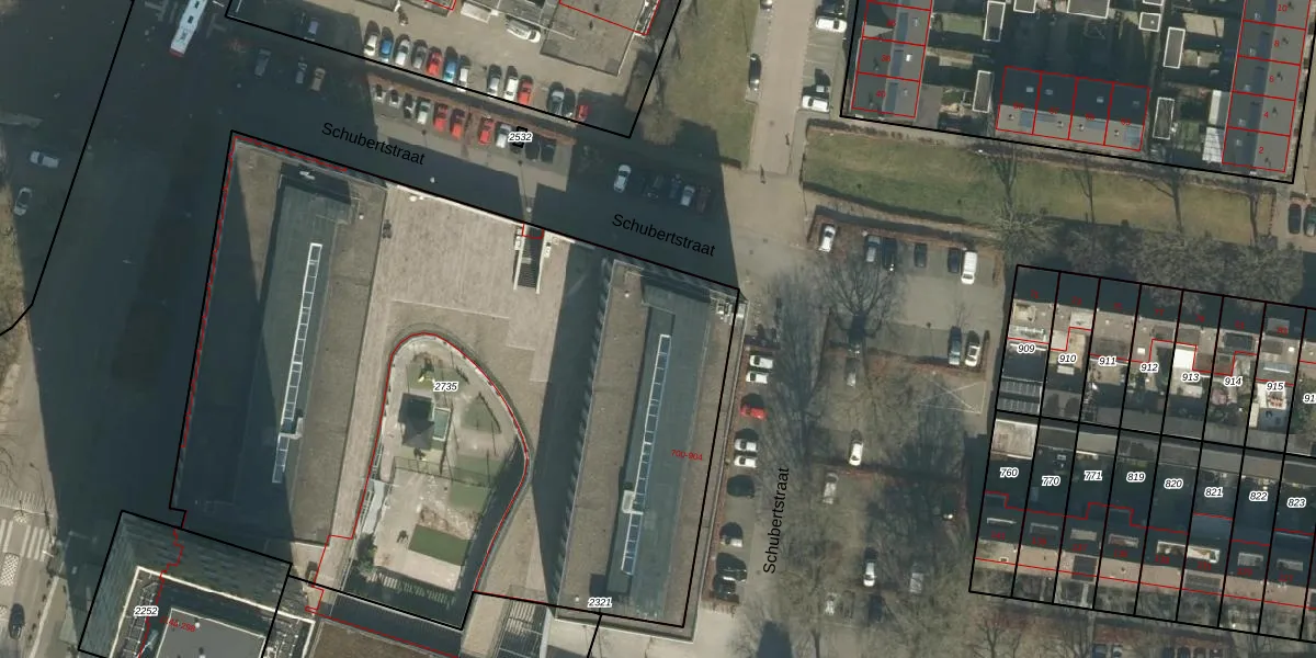Het perceel waarop Schubertstraat 752 staat heeft een oppervlakte van 4690 m². Dit is een zeer groot perceel. De perceeloppervlakte wordt geregistreerd door het Kadaster. Gedetailleerde informatie over de maten van dit perceel kunt u vinden in het rapport Kadastrale kaart met maatvoering van Schubertstraat 752.