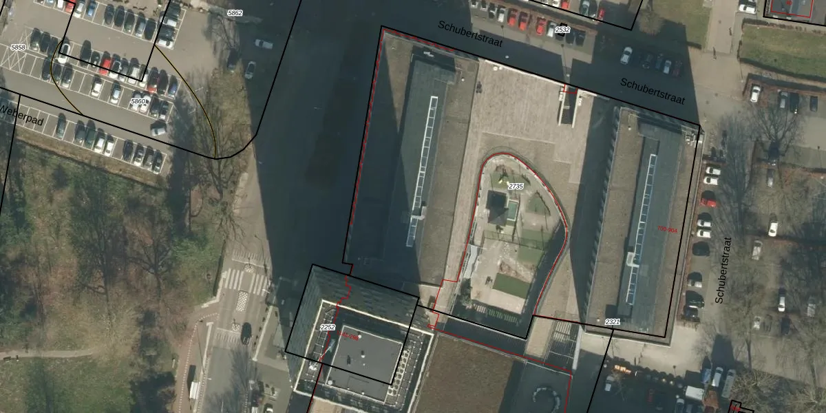 Het perceel waarop Schubertstraat 816 staat heeft een oppervlakte van 4690 m². Dit is een zeer groot perceel. De perceeloppervlakte wordt geregistreerd door het Kadaster. Gedetailleerde informatie over de maten van dit perceel kunt u vinden in het rapport Kadastrale kaart met maatvoering van Schubertstraat 816.