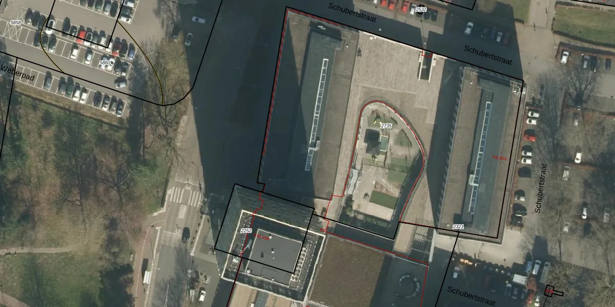 Het perceel waarop Schubertstraat 818 staat heeft een oppervlakte van 4690 m². Dit is een zeer groot perceel. De perceeloppervlakte wordt geregistreerd door het Kadaster. Gedetailleerde informatie over de maten van dit perceel kunt u vinden in het rapport Kadastrale kaart met maatvoering van Schubertstraat 818.