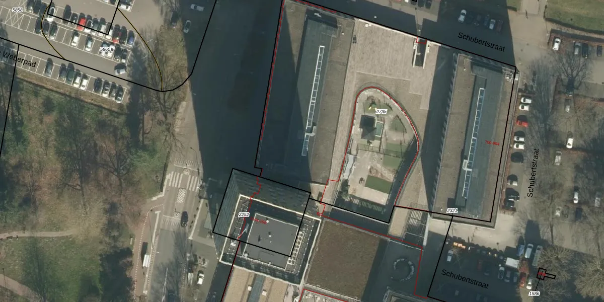 Het perceel waarop Schubertstraat 820 staat heeft een oppervlakte van 4690 m². Dit is een zeer groot perceel. De perceeloppervlakte wordt geregistreerd door het Kadaster. Gedetailleerde informatie over de maten van dit perceel kunt u vinden in het rapport Kadastrale kaart met maatvoering van Schubertstraat 820.