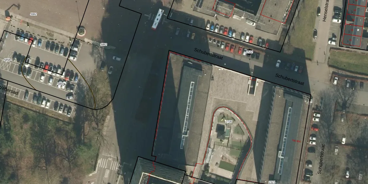 Het perceel waarop Schubertstraat 832 staat heeft een oppervlakte van 4690 m². Dit is een zeer groot perceel. De perceeloppervlakte wordt geregistreerd door het Kadaster. Gedetailleerde informatie over de maten van dit perceel kunt u vinden in het rapport Kadastrale kaart met maatvoering van Schubertstraat 832.