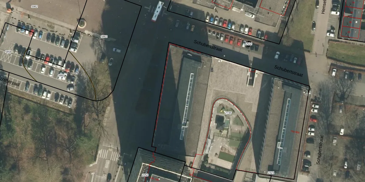 Het perceel waarop Schubertstraat 834 staat heeft een oppervlakte van 4690 m². Dit is een zeer groot perceel. De perceeloppervlakte wordt geregistreerd door het Kadaster. Gedetailleerde informatie over de maten van dit perceel kunt u vinden in het rapport Kadastrale kaart met maatvoering van Schubertstraat 834.