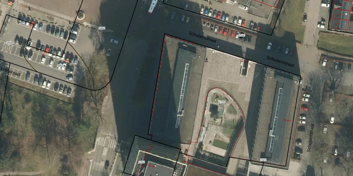 Het perceel waarop Schubertstraat 836 staat heeft een oppervlakte van 4690 m². Dit is een zeer groot perceel. De perceeloppervlakte wordt geregistreerd door het Kadaster. Gedetailleerde informatie over de maten van dit perceel kunt u vinden in het rapport Kadastrale kaart met maatvoering van Schubertstraat 836.