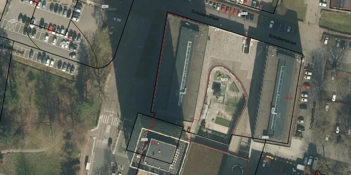 Het perceel waarop Schubertstraat 842 staat heeft een oppervlakte van 4690 m². Dit is een zeer groot perceel. De perceeloppervlakte wordt geregistreerd door het Kadaster. Gedetailleerde informatie over de maten van dit perceel kunt u vinden in het rapport Kadastrale kaart met maatvoering van Schubertstraat 842.