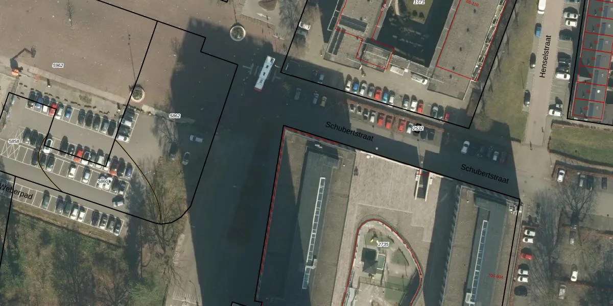 Het perceel waarop Schubertstraat 850 staat heeft een oppervlakte van 4690 m². Dit is een zeer groot perceel. De perceeloppervlakte wordt geregistreerd door het Kadaster. Gedetailleerde informatie over de maten van dit perceel kunt u vinden in het rapport Kadastrale kaart met maatvoering van Schubertstraat 850.