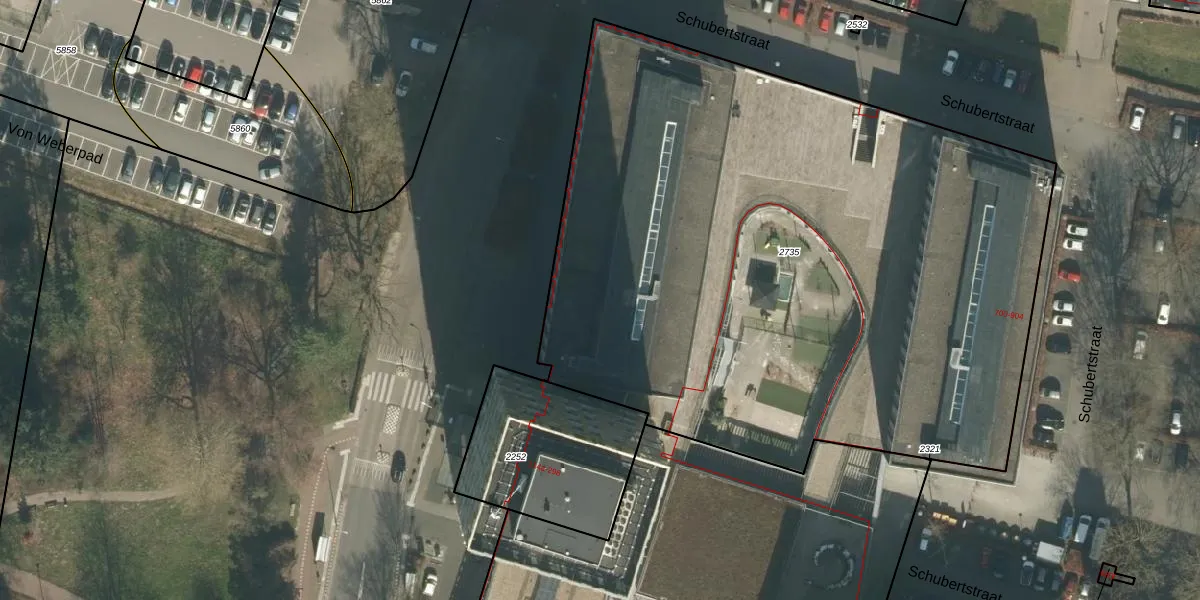 Het perceel waarop Schubertstraat 870 staat heeft een oppervlakte van 4690 m². Dit is een zeer groot perceel. De perceeloppervlakte wordt geregistreerd door het Kadaster. Gedetailleerde informatie over de maten van dit perceel kunt u vinden in het rapport Kadastrale kaart met maatvoering van Schubertstraat 870.