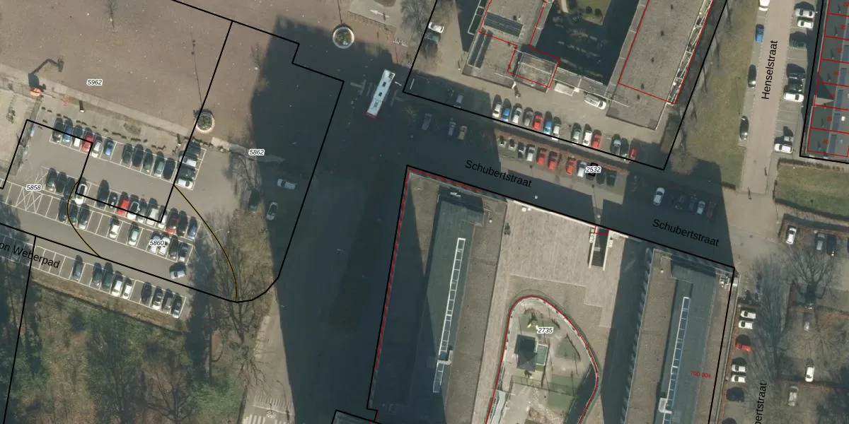 Het perceel waarop Schubertstraat 878 staat heeft een oppervlakte van 4690 m². Dit is een zeer groot perceel. De perceeloppervlakte wordt geregistreerd door het Kadaster. Gedetailleerde informatie over de maten van dit perceel kunt u vinden in het rapport Kadastrale kaart met maatvoering van Schubertstraat 878.