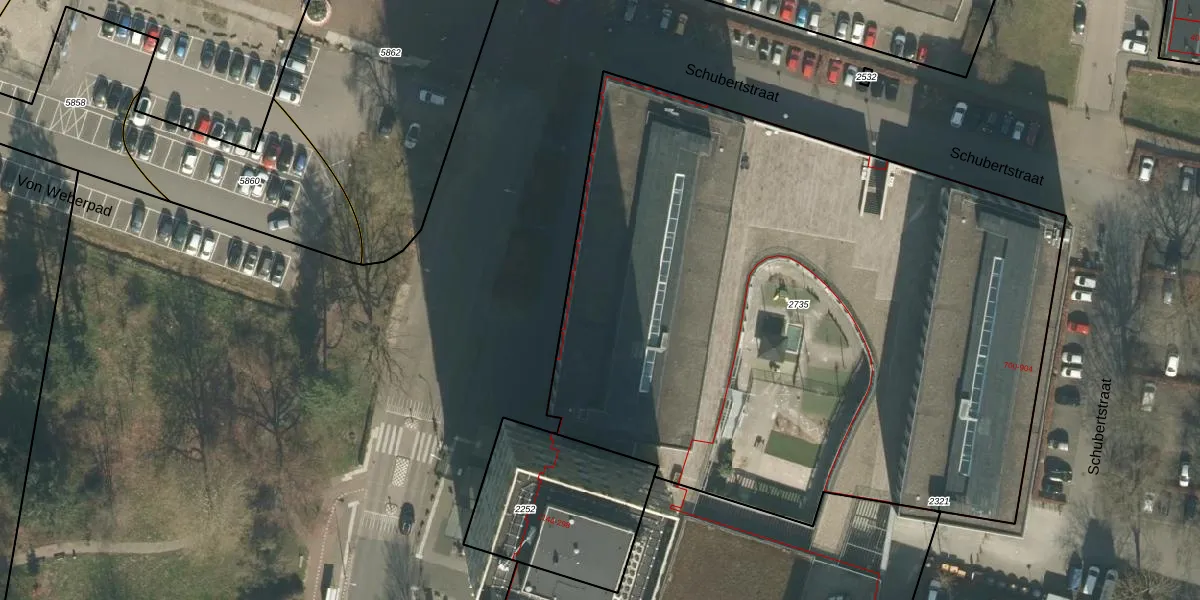 Het perceel waarop Schubertstraat 892 staat heeft een oppervlakte van 4690 m². Dit is een zeer groot perceel. De perceeloppervlakte wordt geregistreerd door het Kadaster. Gedetailleerde informatie over de maten van dit perceel kunt u vinden in het rapport Kadastrale kaart met maatvoering van Schubertstraat 892.
