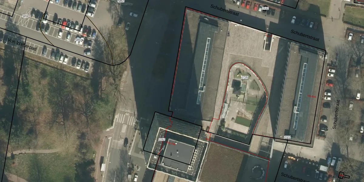 Het perceel waarop Schubertstraat 896 staat heeft een oppervlakte van 4690 m². Dit is een zeer groot perceel. De perceeloppervlakte wordt geregistreerd door het Kadaster. Gedetailleerde informatie over de maten van dit perceel kunt u vinden in het rapport Kadastrale kaart met maatvoering van Schubertstraat 896.