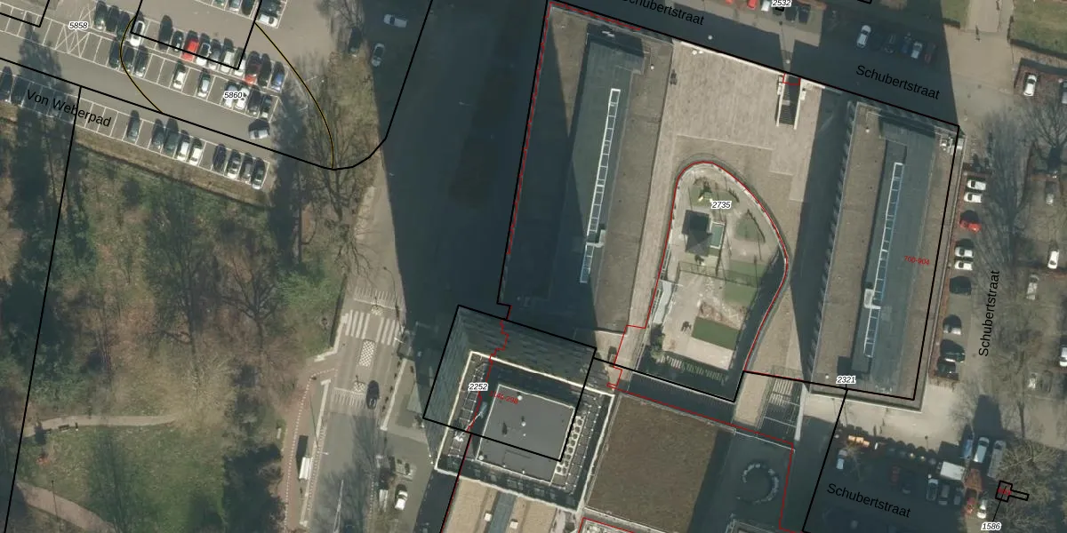 Het perceel waarop Schubertstraat 898 staat heeft een oppervlakte van 4690 m². Dit is een zeer groot perceel. De perceeloppervlakte wordt geregistreerd door het Kadaster. Gedetailleerde informatie over de maten van dit perceel kunt u vinden in het rapport Kadastrale kaart met maatvoering van Schubertstraat 898.