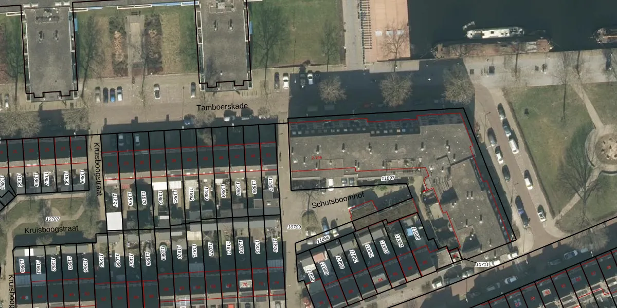 Het perceel waarop Schutsboomhof 166 staat heeft een oppervlakte van 2143 m². Dit is een zeer groot perceel. De perceeloppervlakte wordt geregistreerd door het Kadaster. Gedetailleerde informatie over de maten van dit perceel kunt u vinden in het rapport Kadastrale kaart met maatvoering van Schutsboomhof 166.