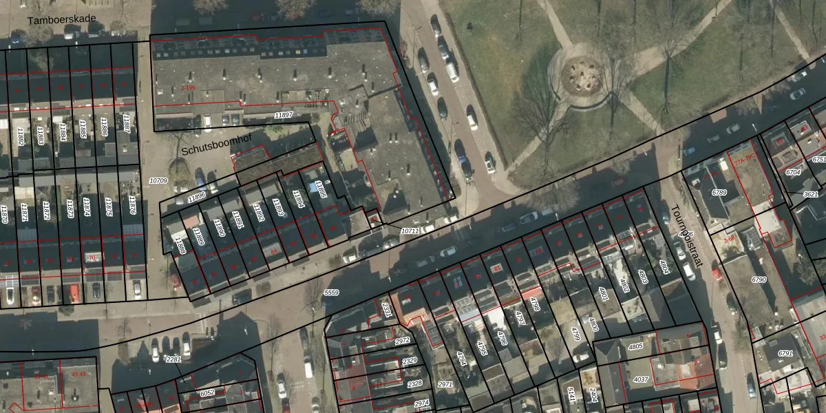 Het perceel waarop Schutsboomhof 56 staat heeft een oppervlakte van 2143 m². Dit is een zeer groot perceel. De perceeloppervlakte wordt geregistreerd door het Kadaster. Gedetailleerde informatie over de maten van dit perceel kunt u vinden in het rapport Kadastrale kaart met maatvoering van Schutsboomhof 56.