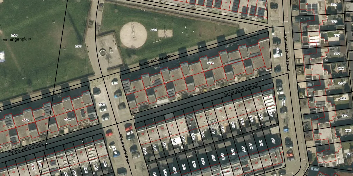 Serooskerkestraat 9 is gelegen op kadastraal perceel TBG01AG5768. Deze kadastrale aanduiding is uniek en wordt gebruikt door het Kadaster om eigendomsrechten en andere zakelijke rechten vast te leggen. Het perceel maakt onderdeel uit van de kadastrale gemeente Tilburg.